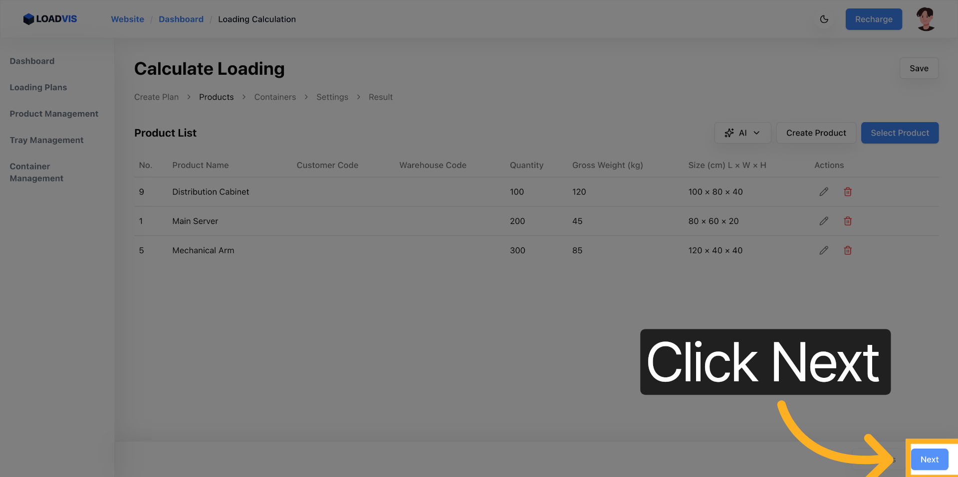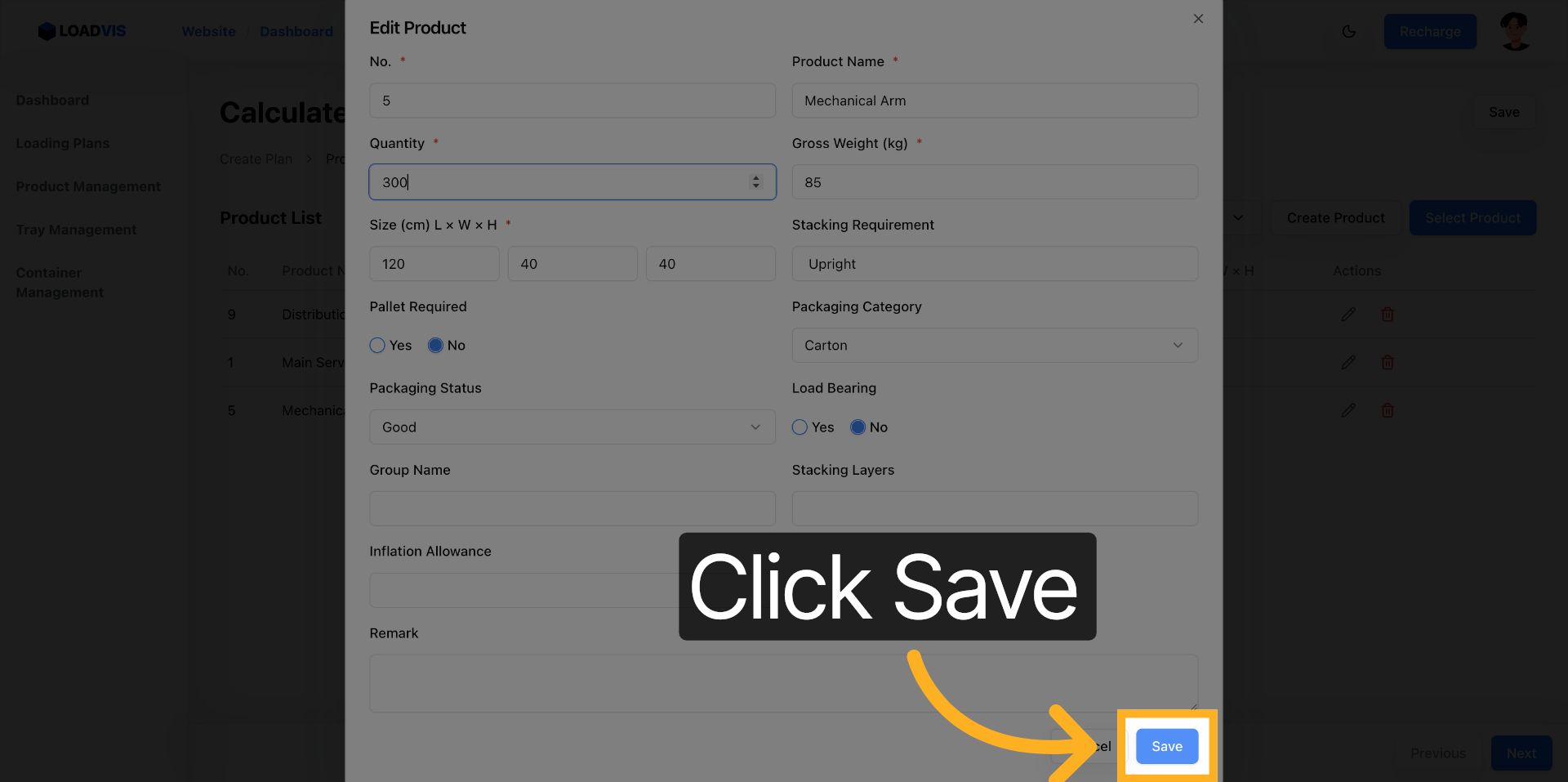 Данные не появляются из воздуха. Подтягивайте мастер-списки из ERP или WMS. Выберите первый SKU. Укажите точное количество. Очистите поле. Введите цифру. Сохраните. Повторите цикл для каждого артикула, который участвует в поставке. Сто единиц паллетированного товара. Двести коробок с хрупким наполнителем. Триста мешков. Каждое значение меняет вектор распределения массы.